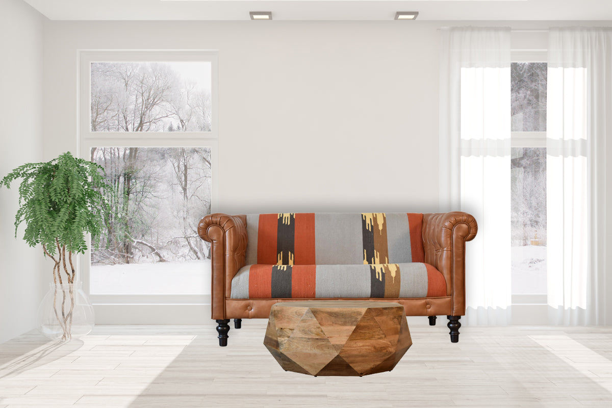 We love our coffee table which features a geometric-shaped design. It has been constructed from 100% solid mango wood in an oak-ish finish and boasts a modern feel with it's round shape making it surprisingly versatile in any home.