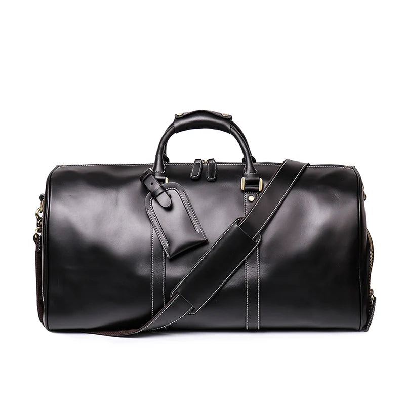 Leather Duffle Bag with Shoe Compartment