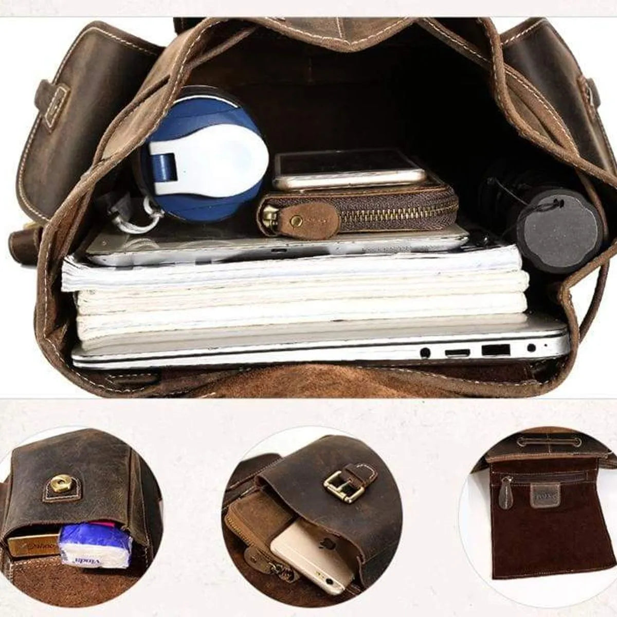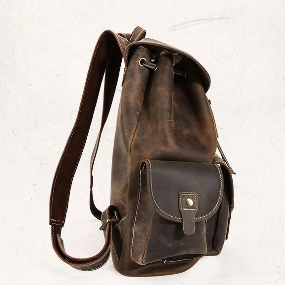 The Thorsen Backpack is made of genuine cowhide leather with natural creases and lines throughout that give the impression of a true antique.
